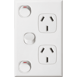 SKU: 3197e474cf6bVertical double powerpoint 10A with extra 16A switch- white