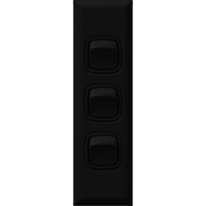 SKU: f0b887d4cabeArchitrave rocker switch – Single Pole Double Throw – 3 gang 2 way 10A 240V a.c. black