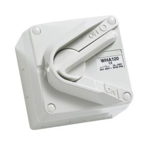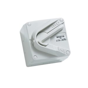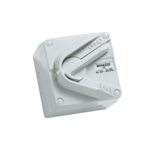 SKU: d866368abe8eSurface Switch, 1 Gang, 1 Pole, 250VAC, 35A, Hoseproof, M160 Rating – Resistant Grey