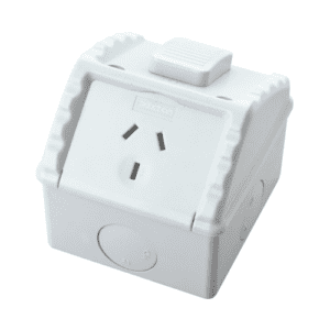 SKU: 0f27edf62542AQUA LIFE – IP53 Weatherroof Single Powerpoint 10Amp – Surface Mount – Limestone Grey