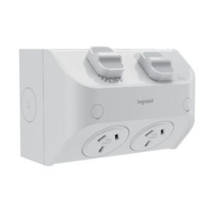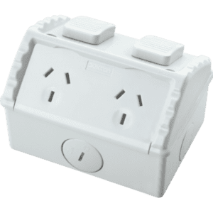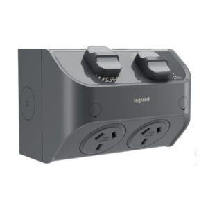 SKU: 6083e2e518cbAQUA LIFE – IP53 Weatherproof Double Powerpoint 10Amp – Surface Mount – Limestone Grey