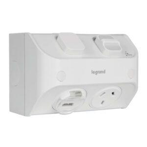 SKU: c6d53c1af0c5AQUA LIFE – IP53 Weatherproof Single Powerpoint 15Amp – Surface Mount – Limestone Grey