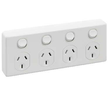 Quad Switch Socket Outlet, Classic, 250V, 10A, 2 Pole, Safety Shutter