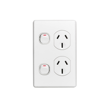 Twin Switch Socket Outlet, Classic, 250V, 15A, Vertical, Safety Shutter