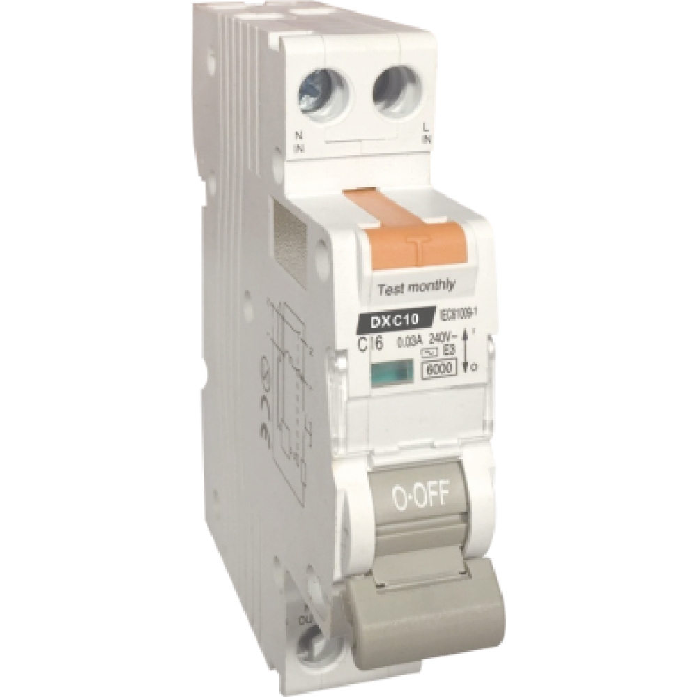 1P+N, 16A C Curve, 6kA AC Type, RCBO
