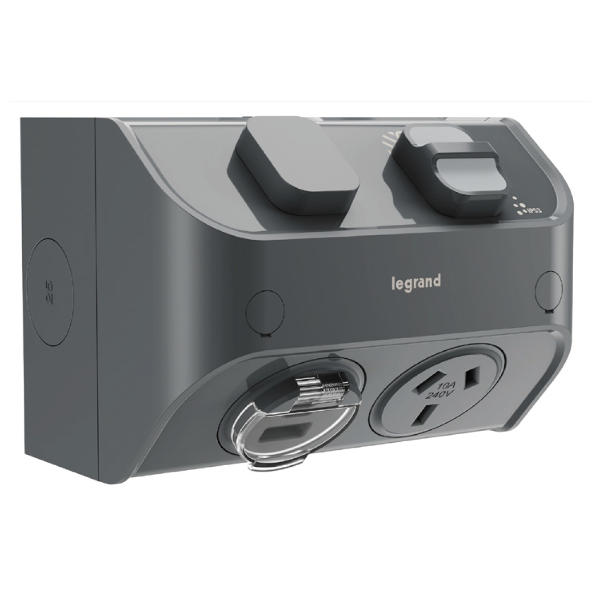 AQUA LIFE – IP53 Weaterproof Single 10Amp Powerpoint With USB Type A & C – Surf Mount – Cement Grey
