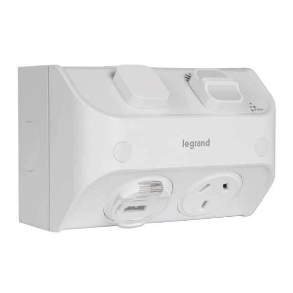 AQUA LIFE – IP53 Weaterproof Single 10Amp Powerpoint With USB Type A & C – Surf Mount – Limestone Grey