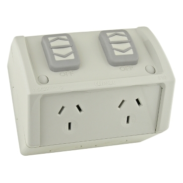 Twin Switch Socket Outlet, 250V, 10A, Weather Proof – Resistant Grey