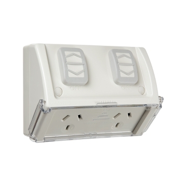 Twin Switch Socket Outlet, 250V, 10A, Weather Proof, Flap, Flush Mount, Double – Resistant Grey